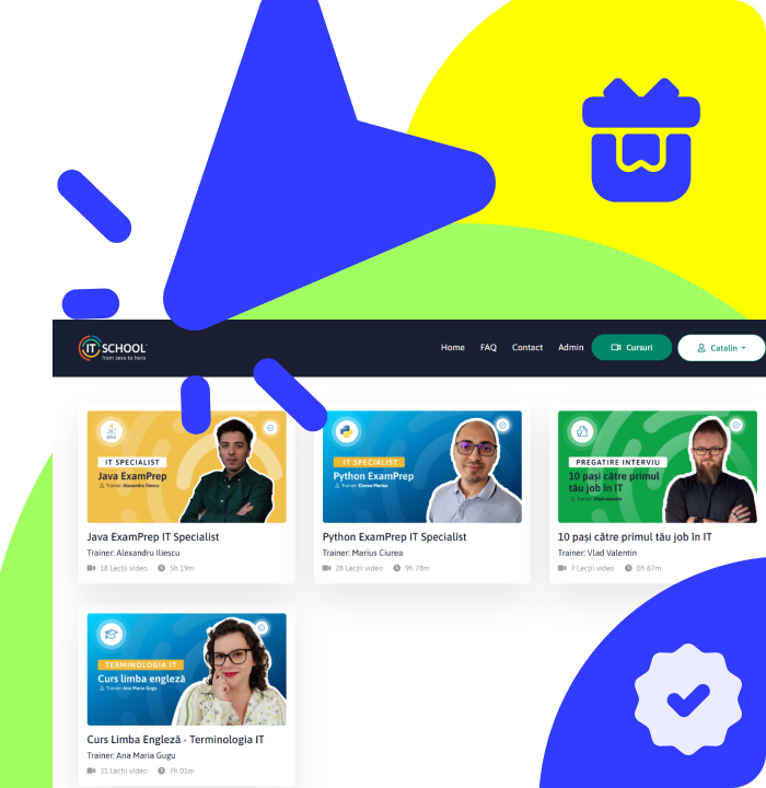 La înscriere primești acces gratuit la platforma noastră internă de eLearning, unde poți parcurge cursul Limba Engleză pentru Începători – Terminologia IT și alte materiale care te susțin pe parcursul pregătirii.